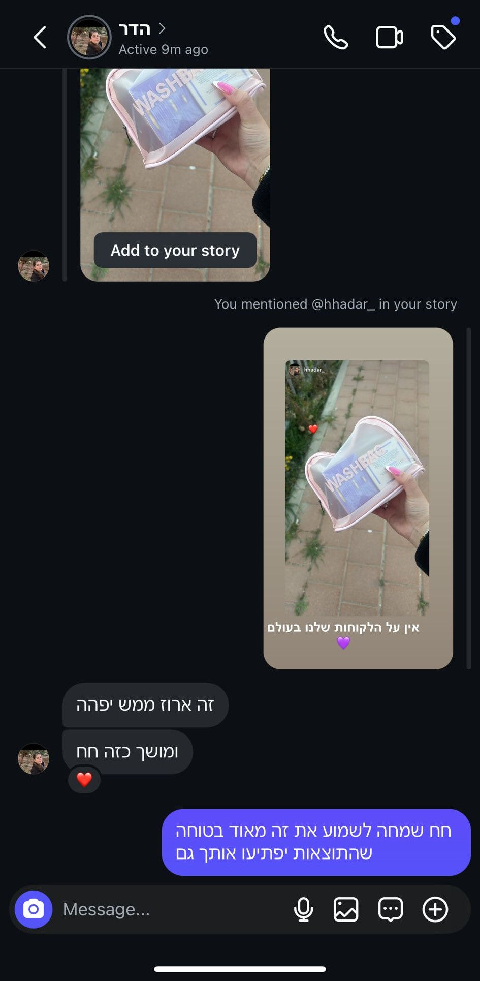 הגיע אליי עם תיק רחצה וספרון דיגיטלי שקיבלתי בחינם זה היה נחמד מצידכם החבילה הגיעה אליי תוך שבוע כמעט ניסיתי משימוש ראשון רואים תוצאות אני ממשיכה ומתמידה עם זה וחייבת לימר שזה עובד מדהים כל הכבוד שעמדתם בהבטחות שלכם אמליץ עליכם בכל מקום תודה רבה